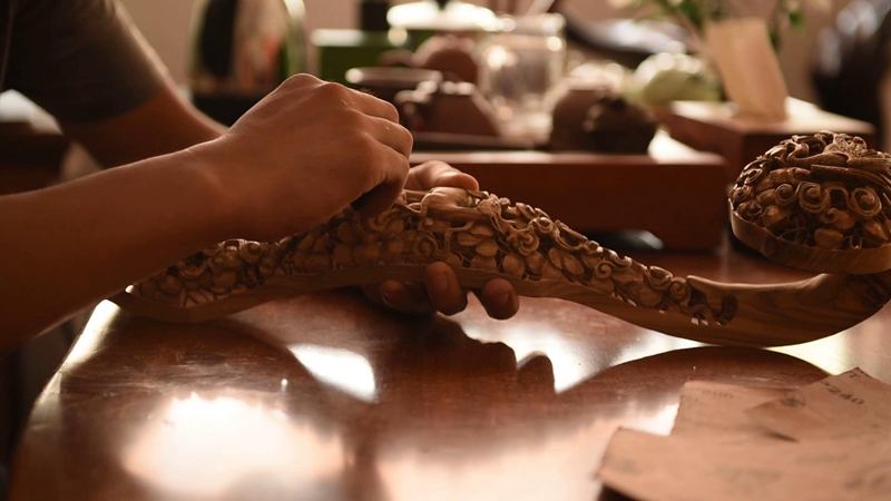 经小队采访:颜景新,山东曲阜人。生于楷雕世家,为曲阜颜氏楷木雕刻第七代嫡传人。国家级非物质文化遗产“曲阜楷木雕刻”项目代表性传承人、山东省非物质文化遗产传承人。2003年被授予“山东省工艺美术大师”称号。2006年12月被国家发展和改革委员会授予“全国优秀工艺美术创作人员”。2007年被山东省授予非物质文化遗产传承人。2009年6月被授予国家级非物质文化遗产代表性传承人。现为中国(楷雕)工艺美术大师、中国工艺美术学会会员、山东省工艺美术学会理事、山东美术家协会理事、国家高级工艺美术师。颜老很开心的接受了艺铭队的采访要求并于家中接待采访队伍。在长达一个小时的采访中,颜老详细的给艺铭队介绍了楷木雕刻的历史、文化内涵以及颜老当年学习这门技艺的艰辛和心酸,颜老的话语中处处充满着对于楷木雕刻的喜爱和对于这门技艺的尊敬。在结束对颜老的采访后,艺铭队来到颜老先生孙子的工作室隆盛轩,参观了颜老先生的优秀作品,颜老的匠心之作让艺铭队深刻体会到了这门古老技艺的美和背后的巨匠精神。在参观作品的同时,艺铭队也和颜老的孙子进行了长时的交流,听取了年轻一倍对于楷木雕刻的想法和面临的挑战。
