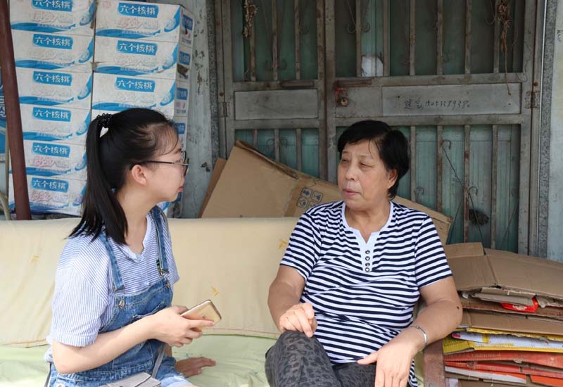 队伍首先到达大武水源地核心区——大武村。首先映入眼帘的是一片庄稼地和散落在各处的房屋残骸。在路上,我们偶遇几个在地里农作的老伯,其中一个老伯说到在拆迁以前是没有这么多地方种庄稼的,房子拆迁之后这些地方就种上了玉米、大豆等农作物。随后,我们采访了一位在铁路旁开小卖部的奶奶。她说:“为了保护水源地水质,村子里的大部分人都搬走了,大都搬到了新建的溡源社区。能住楼房了大多数人还是挺开心的。”
