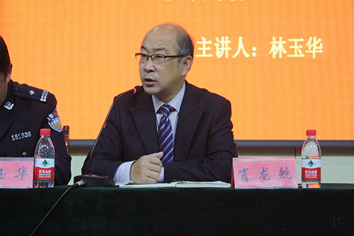 林玉华在报告中从防网络电信诈骗、盗窃、街头诈骗三大方面进行了讲解。他首先从数据上分析了大学生受诈骗形势的严峻。接下来,林玉华针对三种诈骗的具体形式,为在座同学们作出了详细阐述。他重点讲解了网络电信诈骗,其中,他列举了网上购物诈骗,冒充95588、95515等银行客服电话诈骗,以网上兼职刷信誉为名进行诈骗,冒充“公安、检察、法院”机关工作人员打电话诈骗,冒充朋友电话、QQ、微信等方式进行诈骗,购车退税等诈骗,谎称亲人“出事、出车祸”等急需汇款诈骗,中奖短信电话诈骗,外地电话号码呼通即停诈骗,通过短信引诱汇款诈骗,通过短信引诱汇款诈骗,订票诈骗,贷款信息诈骗十二种诈骗行为。同时,他结合真实案例,针对诈骗类型,为同学们讲解了对应的防范措施。最后,他根据多年的工作经验,总结了“五不”防诈骗、黄金自救半小时、十六条提醒分享给同学们。