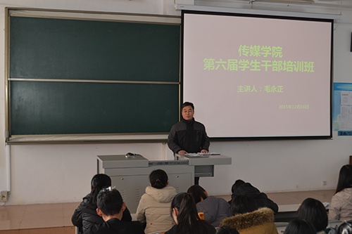 培训伊始,毛永正向同学们解释了何为学生干部,“干部”前的定语“学生”要求同学们承担身为学生应尽的义务,要做到德智体全面发展,树立正确的世界观、人生观、价值观;并引用孔子的正名思想、仁义思想告诫同学们作为“干部”要做到居其位尽其责,关心关爱其他同学,培养宽容豁达的品质。