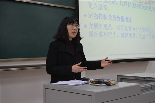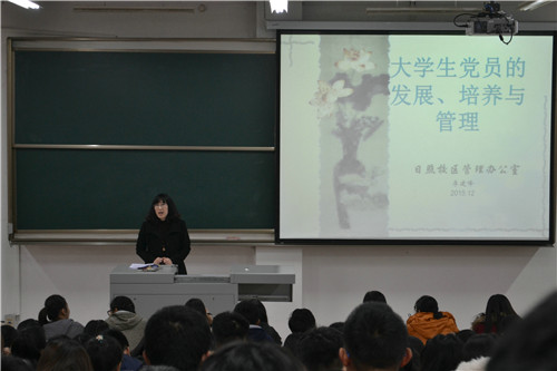 培训伊始,李建峰围绕五个关键问题开始了本次的演讲,针对同学们关于党员发展、培养的流程认识不深这一情况针对性地做了详细的介绍,她从大学生比较关注的如何成为党员的问题入手,将大学生党员的发展、培养和管理进行了详细地讲述。随后,李建峰向学生干部叮嘱了每个流程的注意事项,从提交入党申请书、入党积极分子的选拔和培养、发展对象的确定和考查、 预备党员的接收和审批和预备党员的教育、考查五个方面进行了具体的讲述。培训最后,李建峰老师又向在场的学生干部宣读了《入党申请书》的格式和相关内容,回答了来自同学们的问题,使在场的同学们都对党员发展问题有了更深入的了解。