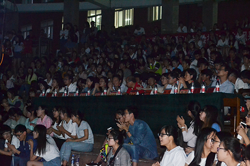业务老师卢长春、李莹、张娟、孔帅、张富海、邱春燕等组成评委团为晚会选手打分。同时,通过网上报名方式成为大众评审团的同学全部到位。