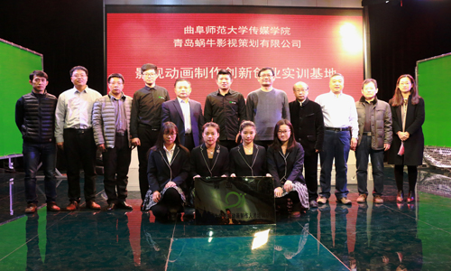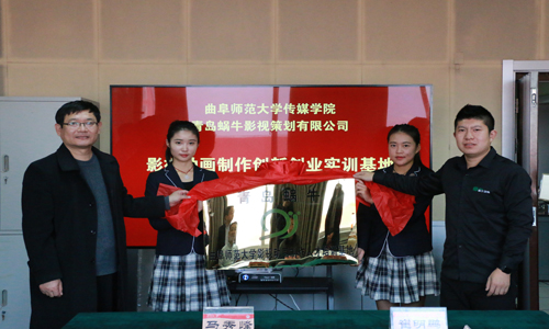教务处副处长张全景、青岛蜗牛影视公司CEO崔明鹏为影视动画制作人才培养基地揭牌,至此仪式圆满结束。