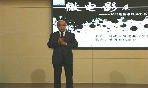 影片放映结束,影片指导老师董丛斌上台做点评、总结。他提到,今晚各位看到的所展播的影片仅是一件“成品”,而影片背后的辛勤付出只有制作者亲身经历……最后,他总结道“希望各位拿出拍片修片的精气神来克服学习和生活道路上的困难,(这)既是对2013级学生的勉励,也是对2016级新生的寄语”。