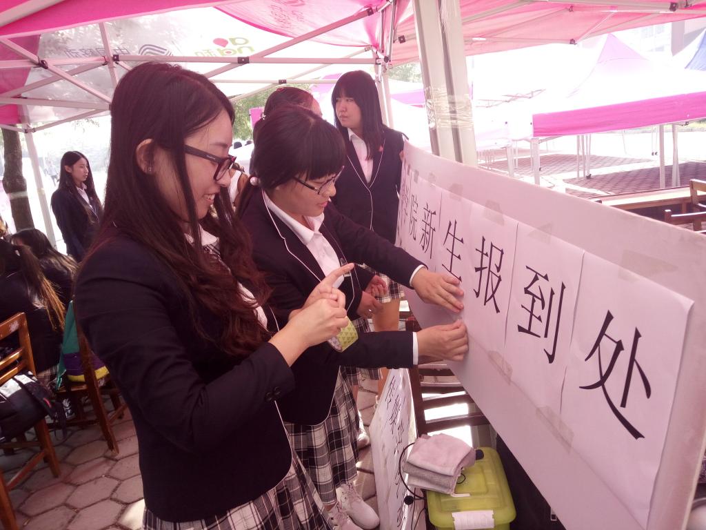 2015级学生前往四季花园、东升园区打扫宿舍卫生。2016级新生女生将入住四季花园,男生将入住东升园区。2015级学生认真仔细地打扫了宿舍园区,为16级新生创造了一个干净、整洁的宿舍环境。同时,迎接新生的大本营也在同天下午搭建起来。