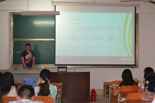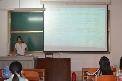 暑期学生干部培训班第六讲在JC101顺利开讲,第十八届团总支学生会副主席王艺、宿管部部长吕文慧、影视文化艺术中心主任徐俐莉三人分别以“学生干部执行力”、“宿舍管理”和“阳光心态”为主题为在座学生干部带来了生动有趣的一次培训。
