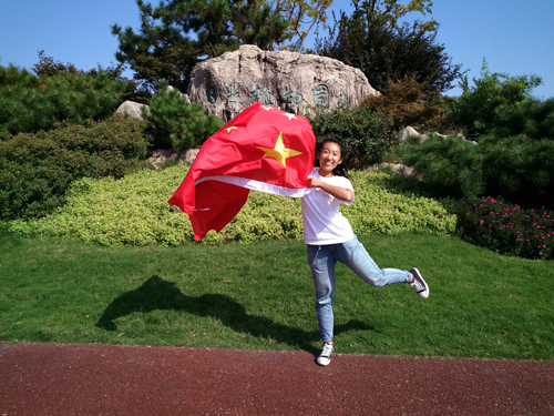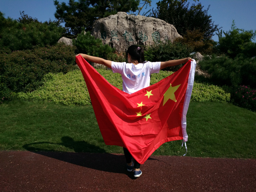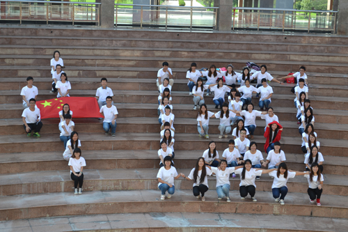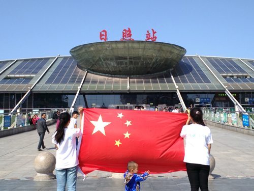 2012级新闻二班的学生们组成的“中国”方阵格外引人注目。鲜红的国旗巧妙地融入到中国的“中”字当中,大家手拉手、肩搭肩一起组成了这个特殊的图案。清一色的白色院服,干净灿烂的笑容,大学生的参与为“点赞”活动又填一道风景。新闻二班班长许炳棋说:“我们班组织这样的活动,一来用我们自己的方式为祖国庆祝了65岁生日,二来提高了班里同学的参与度,很有纪念意义。”还有两名同学自发走上街头,来到日照市火车站、植物园等地和国旗合影,引来路人围观。“为祖国庆生,我们也是蛮拼的。”参与拍照的赵明聪逗趣地说。