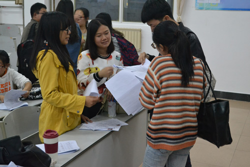 2014级新生根据自身特长,结合自身专业和意愿选择竞选部门。许多新生拥有丰富的工作经验以及满腔热情,想要争取一个展现自己的平台;各部委负责人认真倾听,为其打分并不时地提出问题。“你会如何处理好工作与学习的关系?”“你对这个部门的认识是什么?”新生虽然v有点紧张却能应付自如,得到师哥师姐的赞许。