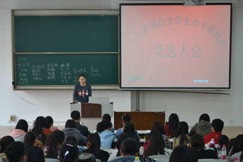 团总支学生会于JA102、JA103、JA104同时展开竞岗纳新会议。团总支学生会主席团成员、各部部长以及副部长出席纳新现场担任评委,2014级有意竞岗的同学参与了竞选。