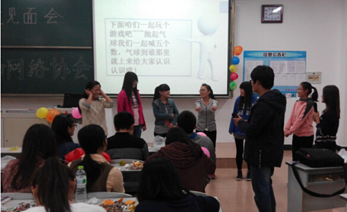 晚上6:20,电脑网络协会的干事们就早早来到A102布置教室,吹气球,贴气球,在黑板上写字,迎接新同学,为他们安排座位等等,大家忙得不亦乐乎。晚上7:00,活动正式开始。首先上演了一个开场舞,跃动的旋律,炫酷的舞步,瞬间将教室气氛点燃。接着会长李玉玺亲自主持,首先向大家介绍了网络协会的发展史和职能,使同学们对协会有了初步认识。随后开始有趣的有奖问答环节。同学们都积极参与,回答又快又对,奖品也不断送出。现场互动之后,接着进入了最重要的部分,介绍协会各个部门的职能和领导人,引起同学们极大的兴趣。活动中还穿插着好听的歌曲和有趣的游戏,大家在快乐中展示了自己,并了解了协会。