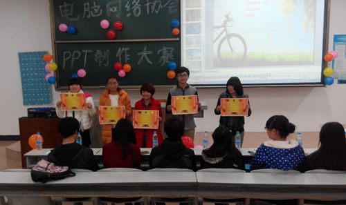 电脑网络协会于11月22日晚7:00在JA102举办了PPT制作大赛决赛。 经过层层选拔,12名同学从近五十位参赛选手中脱颖而出,成功晋级决赛。社团部部长王亦然和阳光心理协会、潮声文学社等七个社团的社长担任此次比赛的嘉宾评委。本次比赛共分为三组,每组四人。晚上7:00,PPT制作大赛决赛正式开始。每位选手依次上台介绍自己的PPT作品,每个作品不超过五分钟。评委根据选手作品的内容、技术、艺术、创意四方面进行打分,超时者将给予相应的扣分。比赛在大家热烈的掌声中开始了。选手们虽然紧张,但介绍起自己的作品,或声情并茂,或慷慨激昂,或滔滔不绝,每个作品都让人耳目一新。活动之余,有奖知识问答等小活动,充分调动起了现场观众的积极性,各种好听的歌曲轮番上演,现场气氛高潮不断,热烈非常。经过两个小时的激烈角逐,最终王晓楠同学摘得此次比赛的桂冠。晚上9:00,PPT大赛完美落幕。 此次大赛为同学们提供了展示自我的舞台,使同学们对于PPT的认识和应用能力有了很大的进步,同学们都收获颇丰,并希望以后还可以参加此类活动。电脑网络协会也表示以后会继续努力,把活动办得越来越好。