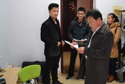 党总支副书记肖龙航,政治辅导员李兴,团总支学生会相关职能部委学生干部对曲师大家属区、山体家属区和前大洼村多名外出住宿学生的寄宿点进行安全走访调查。本次共走访2011级5名同学。 首先到达的山体家属区,肖龙航仔细察看蔡元绪同学在外生活设施是否完备,日常生活需求能否得到保障,并就住宿区卫生、管理、收费和安全隐患等问题与学生进行面对面交流。他特别强调安全事项关乎工作大局,关乎学生的切身利益,并亲自检查住宿区插座、电器的使用情况,特意叮嘱外住同学自我排查安全隐患,注意人身及财产安全。随后肖龙航带领相关学生干部对曲师大家属区住宿的姜东升同学及前大洼村住宿的任赛、李勇和王文营同学进行走访,肖龙航认真检查住宿区安全情况并详细询问学生的生活、学习情况,他强调临近毕业,个人更应提高自身防骗、防盗等安全意识和自我保护意识。走访结束后,在外住宿学生对澳门巴黎人娱乐城