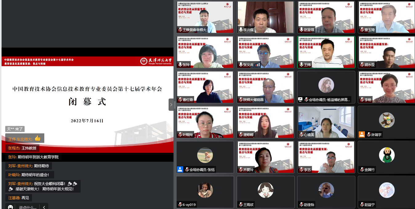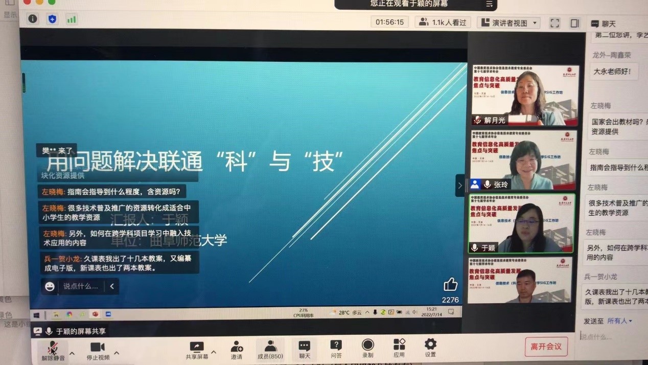 7月14日-7月16日中国教育技术协会信息技术教育专委会学术年会以线上方式召开,本次会议由天津师范大学承办。澳门巴黎人娱乐城 教授、专委会副主任委员李兴保受邀主持7月15日的大会报告,院长王焕景在理事会上介绍澳门巴黎人娱乐城 办学情况并提交申请承办2024年专委会年会的报告,并受邀在7月16日分论坛担任点评专家;于颖教授作为特邀专家在信息技术(科技)课程与教学SIG工作坊上作《用问题解决联通“科”与“技”》的报告,7月16日主持、组织了第4组分论坛。