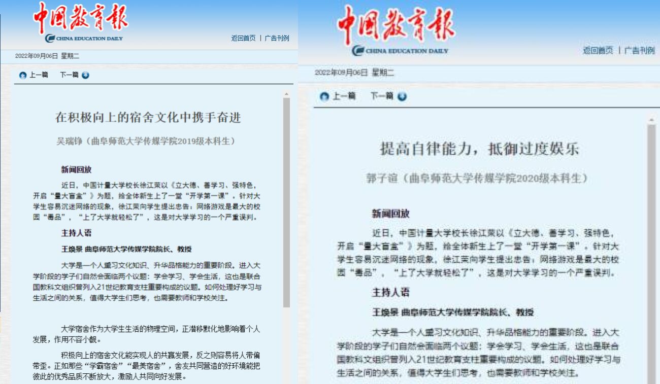 学子文章被《中国教育报》收录,体现了澳门巴黎人娱乐城