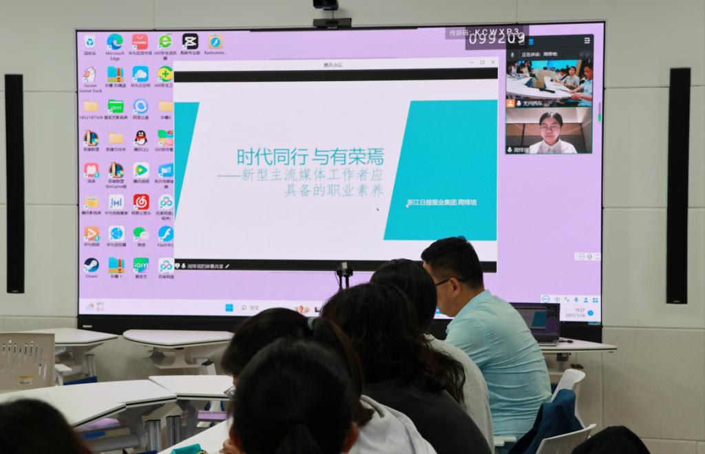 于JC813举办青年学者讲堂第三季第三讲,通过线上连线方式邀请到北京大学文学博士、浙江日报报业集团潮新闻客户端编辑周怿培,开展“与时代同行,与有荣焉——新型主流媒体工作者应具备的职业素养”为主题的讲座。2022级新闻学专业学生参与讲座。讲座由澳门巴黎人娱乐城