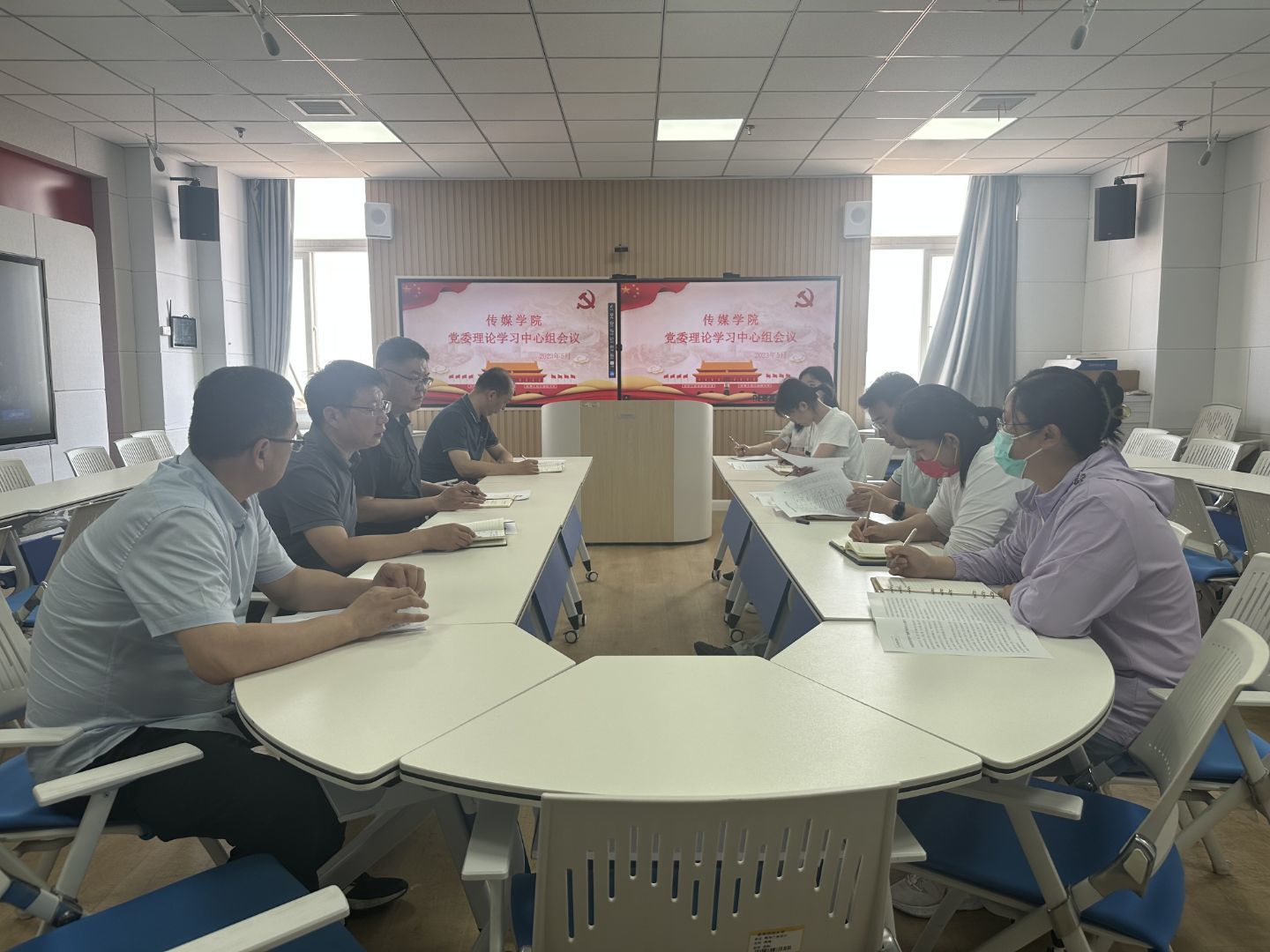 党委理论学习中心组全体成员参与学习并进行讨论。