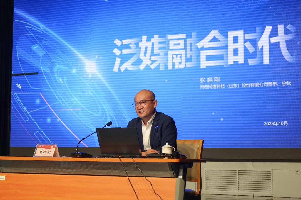 党委常委、副校长胡凡刚出席活动。海看网络科技(山东)股份有限公司董事、总经理张晓刚,山东海看新媒体研究院有限公司副总经理焉凤玲,海看股份党工办主任、战略规划部总监袁强,澳门巴黎人娱乐城