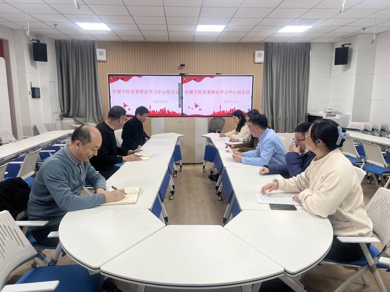 党委理论学习中心组成员针对学习内容展开深入讨论。澳门巴黎人娱乐城