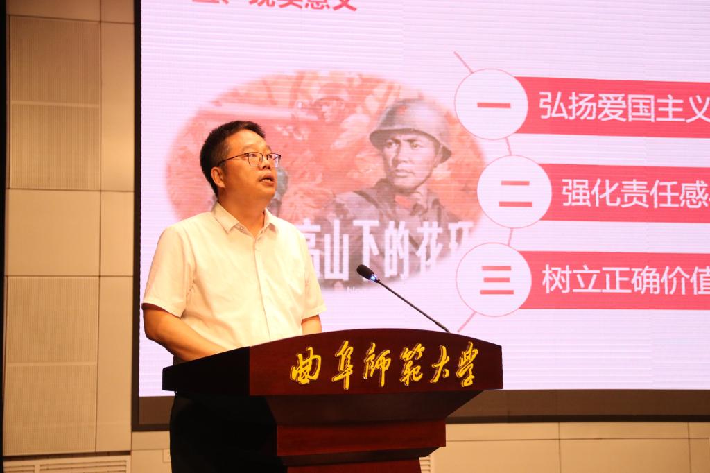 讲英雄故事,承德艺双馨。活动紧扣思政先导,专业先行两个重点,以电影作品《高山下的花环》影视鉴赏为依托层层展开。田维柱围绕作品背景介绍、剧情概述、主题深析、现实意义等多个维度对作品进行解读,深刻诠释了“红心向党担使命,弘扬爱国影为媒”的思想主题。田维柱提出,影片以对越自卫反击战为背景,展现共产党军人、普通老百姓感人的爱国情怀、无私的奉献精神和坚定的理想信念,塑造了一个个鲜活的小人物。他们热爱生活,更热爱脚下这方土地;他们经历战火,在洗礼之下成长为值得我们铭记的大英雄。