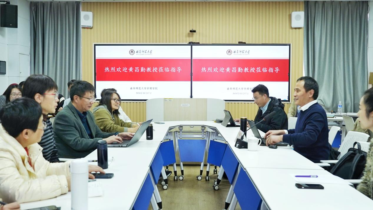 师生的项目申报进行了理论与实践指导。黄昌勤教授首先对“人工智能+教育”研究领域的选题方向和撰写要点进行讲解。接着,黄昌勤教授提供了真实的科研项目撰写范例,并对2025年的课题申报进行了前瞻性指导。最后,黄昌勤教授针对师生们的疑问做了细致的解答。现场气氛热烈,学术氛围浓厚。王焕景院长就此次报告内容进行了总结。