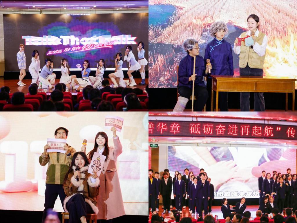 啦啦队充满活力的开场舞蹈瞬间点燃了现场的热情;广播电视学班带来的《“欣”火相传,光影逐梦》以一封曲园录取通知书为起点,讲述了一家三代广电人风雨无阻、坚守为民初心的感人故事;教育技术学二班的《朋友?朋友!》以时空穿越的独特视角,阐释了友谊的价值,角度新颖、创意满满;文艺部串烧舞蹈《时光穿梭机》以童年的旋律带领观众穿越回儿时那段无忧的时光;新闻一班的《墨染牡丹,剑指真相》中报社记者坚守正义、卧底黑牡丹集团追寻真相,内涵深刻,赢得全场喝彩;当教育技术学三班面临《青春“限时题”》,娱乐与作业倒计时碰撞时,他们一路迷茫又奋起,终寻得“答案”,坚定向前,引起现场观众共鸣;啦啦队的《幻想童话》带动全场步入梦幻的童话篇章,心跳与童话的节奏同步振荡;新闻学二班带来的《星语新传:新闻星河的守与创》生动展现了新闻拾光者们在不同时代的坚守,探寻新闻事业背后不变的传承;数字媒体艺术班的《微光汇聚,照亮前行》讲述了在家人与良师的温暖陪伴下,女孩突破画画瓶颈期取得可人成就,彰显了“不至于前,不止于此”的人生态度;教育技术学四班作品《我们都有光明的前程》打破了职业刻板印象,探寻平凡中的伟大,于细腻之中打动人心,同时又不失幽默风趣,引得全场欢笑连连;2024级全体班团合唱《等你的回答》,表达所有人心中最美好的期待与坚持,将现场的气氛推向高潮,整个活动在热烈而轻松愉悦的氛围中圆满落幕,留下了深刻的印象和美好的回忆。