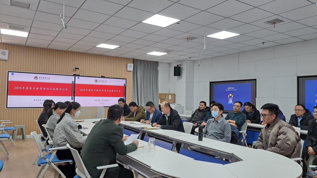 2024年12月25日,澳门巴黎人娱乐城 在C813召开2025年国家级及教育部项目选题论证会。澳门巴黎人娱乐城 院长王焕景,副院长赵可云、刘波以及拟申报科研项目的教师参加此次论证会。