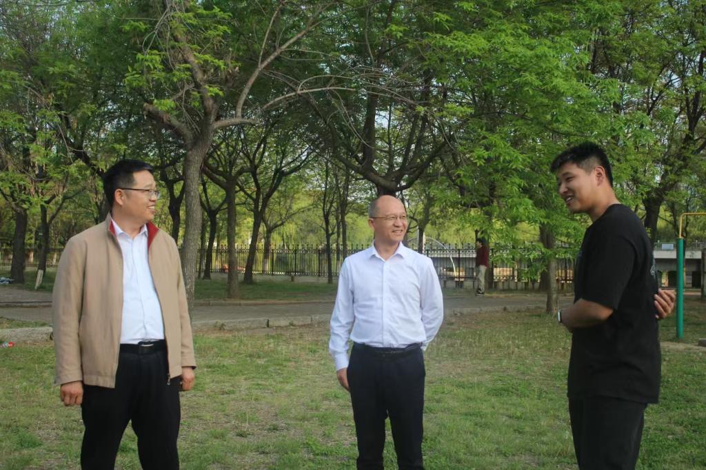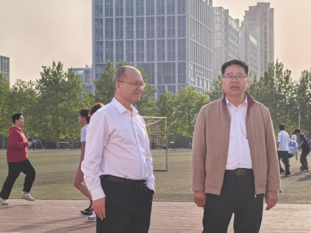 西操场,实地查看春训开展情况,为即将到来的校级运动会鼓舞士气。