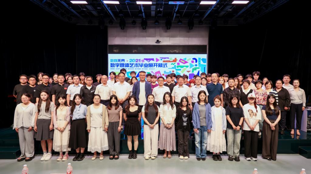 将持之以恒提升教学质量和人才培养水平,助力学生成长成才。赵可云宣读了2021级数字媒体艺术毕业设计展一、二等奖获奖名单,与会领导分别为30余位获奖学生代表颁奖并合影留念。