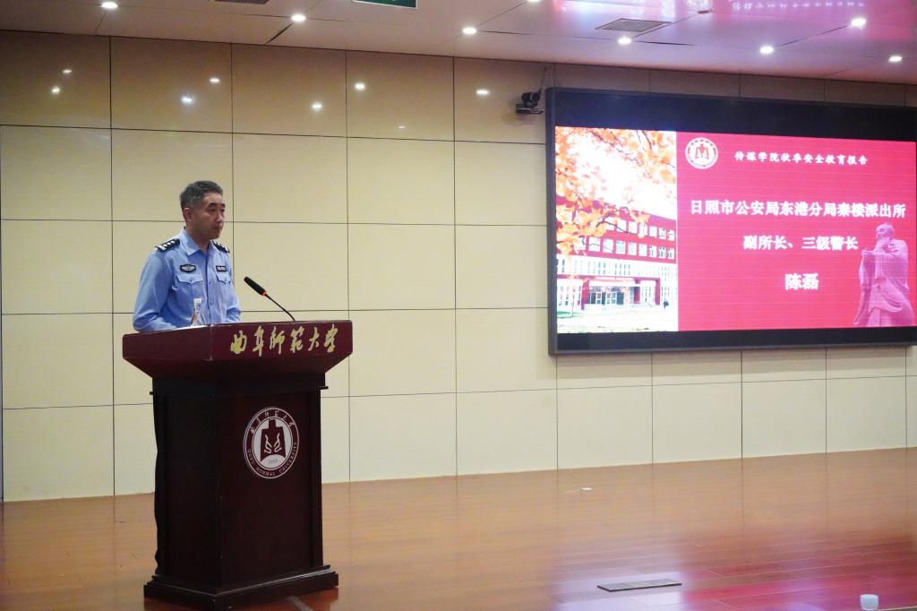 邀请日照市公安局东港分局秦楼派出所副所长陈磊、日照市心脏病医院医师戴启睿于图书馆报告厅为传媒学子作安全教育讲座。日照校区党委副书记刘天浩、保卫处副处长王光江、学生工作处(武装部)副部长赵秀臣、教务处副处长孔峰、澳门巴黎人娱乐城
