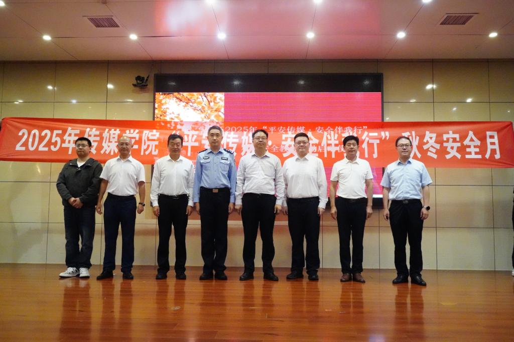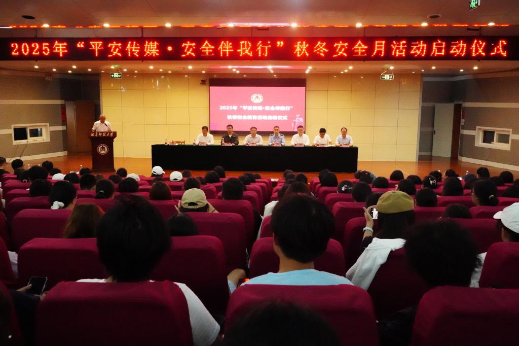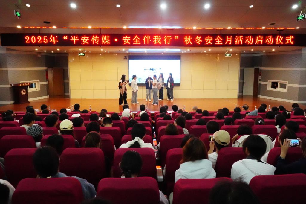 举行2025年“平安传媒·安全伴我行”秋冬安全教育活动启动仪式。日照市公安局东港分局秦楼派出所副所长陈磊、日照市心脏病医院医师戴启睿、日照校区党委副书记刘天浩、保卫处副处长王光江、学生工作处(武装部)副部长赵秀臣、教务处副处长孔峰、澳门巴黎人娱乐城