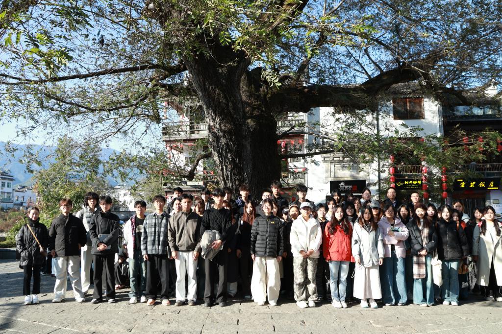 师生先后赴宏村、塔川、守拙园、奇墅湖、南屏、竹海、屏山、卢村、西递及赛金花故居等地,通过实地观察与沉浸体验,感受徽州古村的建筑风貌、自然景观与人文底蕴。同学们在教师指导下,将课堂所学与写生实践相结合,运用摄影、绘画等多种形式,捕捉皖南秋韵,记录文化细节,在创作中深化对地域美学与传统文化精神的理解。