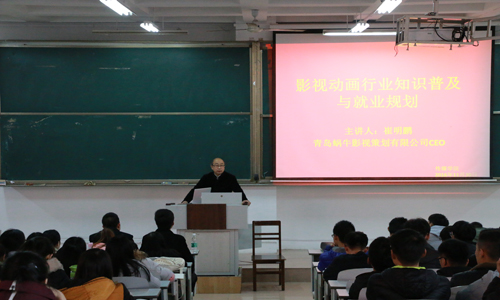 于A105举办了“影视动画行业知识普及与就业规划”报告会。青岛蜗牛影视策划有限公司CEO崔明鹏、蜗牛影视策划有限公司市场部经理崔业涛、澳门巴黎人娱乐城