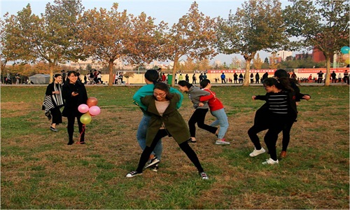 秋日的阳光温馨静谧,微风掠过,研究生同学们也都放下了拘束,放开了心情,表现出极佳的运动状态和游戏热情。相互配合、团结协作,不仅体会到了交友的乐趣,也为以后的进一步交流发展奠定了基础。