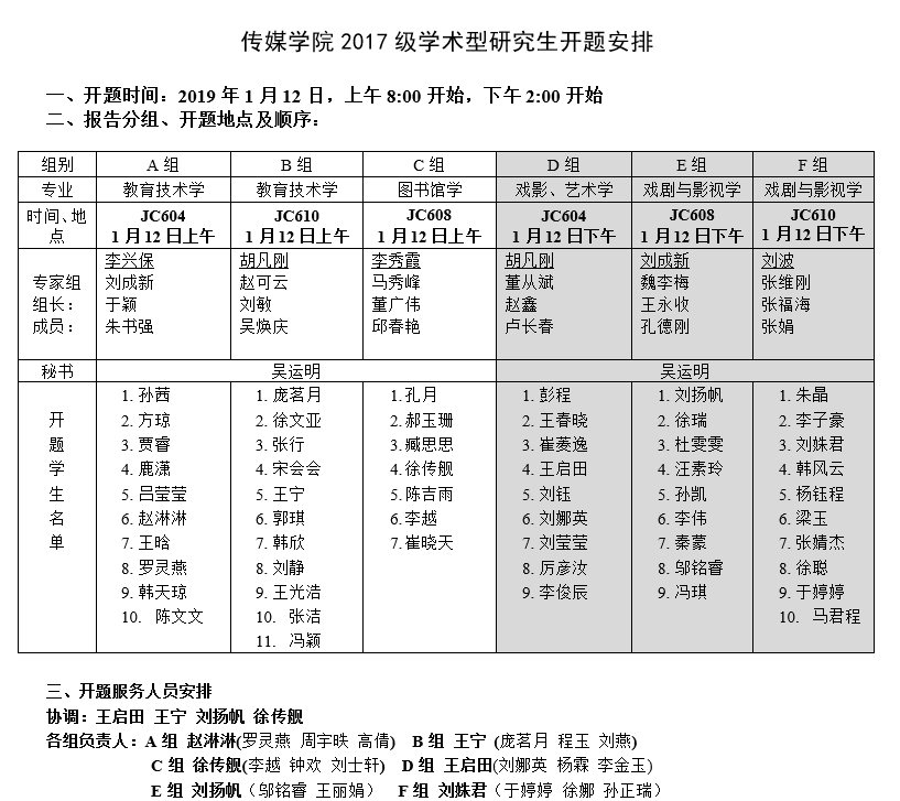 澳门巴黎人娱乐城 2017级学术型研究生开题安排