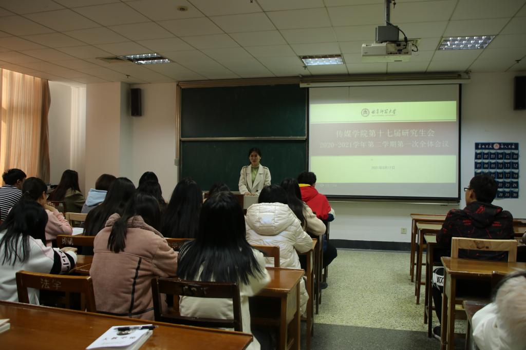 会议伊始,崔同顺对各部门上学期的工作进行了肯定,高度赞扬了全体研究生会成员在工作中表现出的积极性,也对一些由于不可控因素导致未能完全展开的工作表示了遗憾。随后,研究生会各部门汇报了本学期的工作,强调研究生会成员要以身作则,要有敢为人先的意识以及自律意识。最后,韩婷进行总结,她肯定了研究生会2020年度的工作,也向各部门提出了新学期的工作意见,对研究生会整体发展表达了期许。
